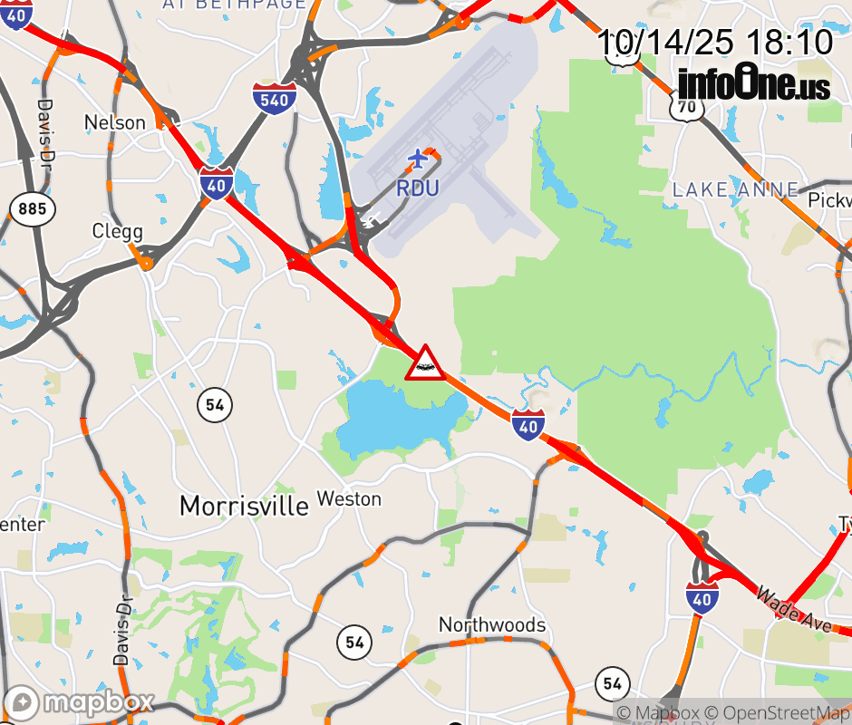 The right shoulder is closed at Exit 285 (Aviation Pkwy). Updated: Tue 10/14/25 6:10 PM EDT ![]() Updated: Tue 10/14/25 6:10 PM EDT |
