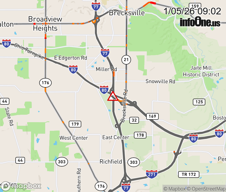 The left lane is blocked on I-77 South beyond I-80/Ohio Turnpike, due to debris on roadway. ![]() |
