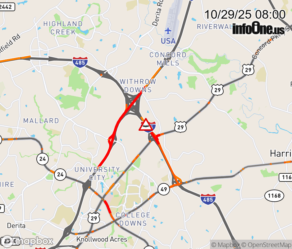 The right shoulder is closed after Exit 32 ( N Tryon St.). Updated: Wed 10/29/25 8:00 AM EDT  Updated: Wed 10/29/25 8:00 AM EDT | |||||||||