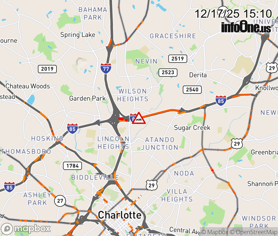 The center lane is closed before Exit 39 (Statesville Ave). ![]() |