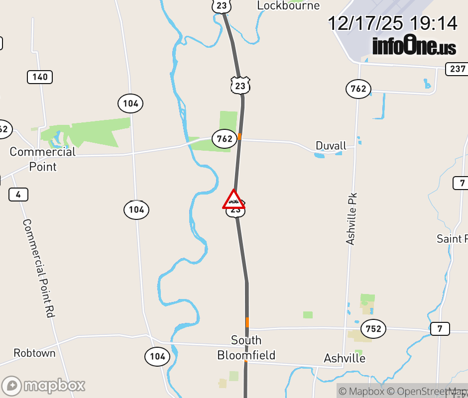 The left lane is blocked on US-23 South beyond SR-762, due to a disabled vehicle. ![]() |