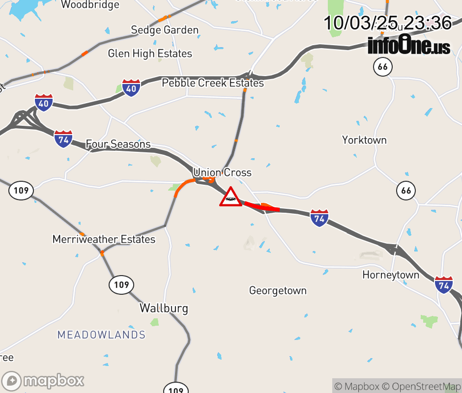 Canceled 10/4/25 1:30 AM Location: I-74W at MM 60, NC Vehicle Crash.