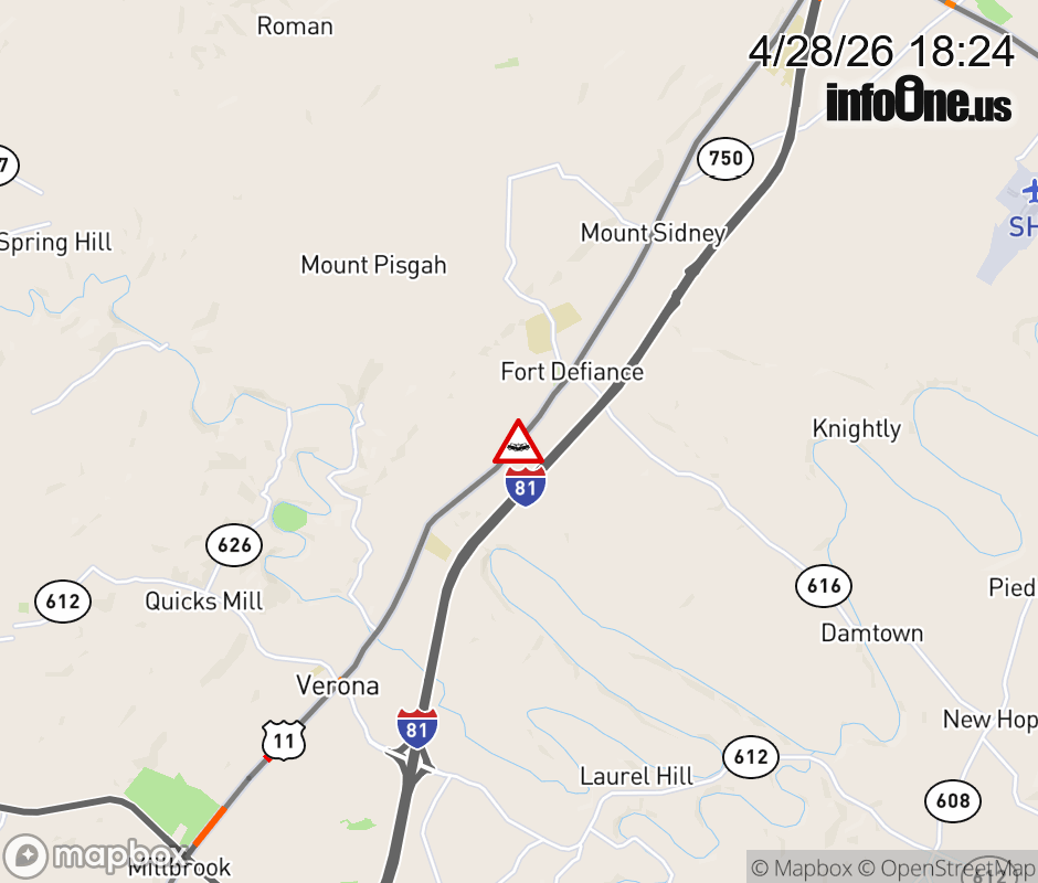 On US-11 in the County of Augusta, in the vicinity of Toll Gate Rd; Rt. 742E/W (Augusta County), motorists can expect delays due to a vehicle crash. All north lanes are closed. All south lanes are closed. ![]() |