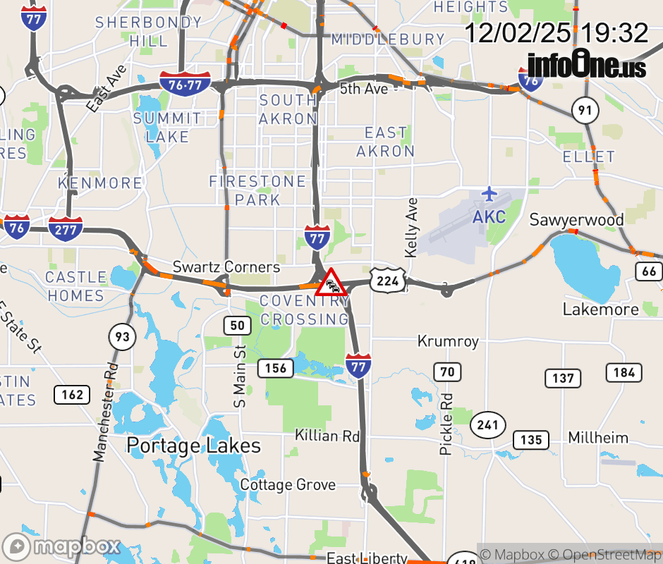 The left lane is blocked on I-77 North at I-277/US-224 West, due to repairs/maintenance. ![]() |