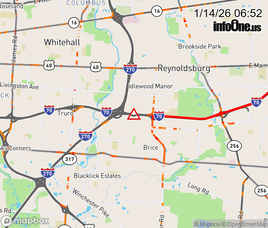 The right shoulder is blocked on I-70 West at I-70 West C-D Road, due to a crash. Updated: Wed 1/14/26 6:52 AM EST ![]() Updated: Wed 1/14/26 6:52 AM EST |