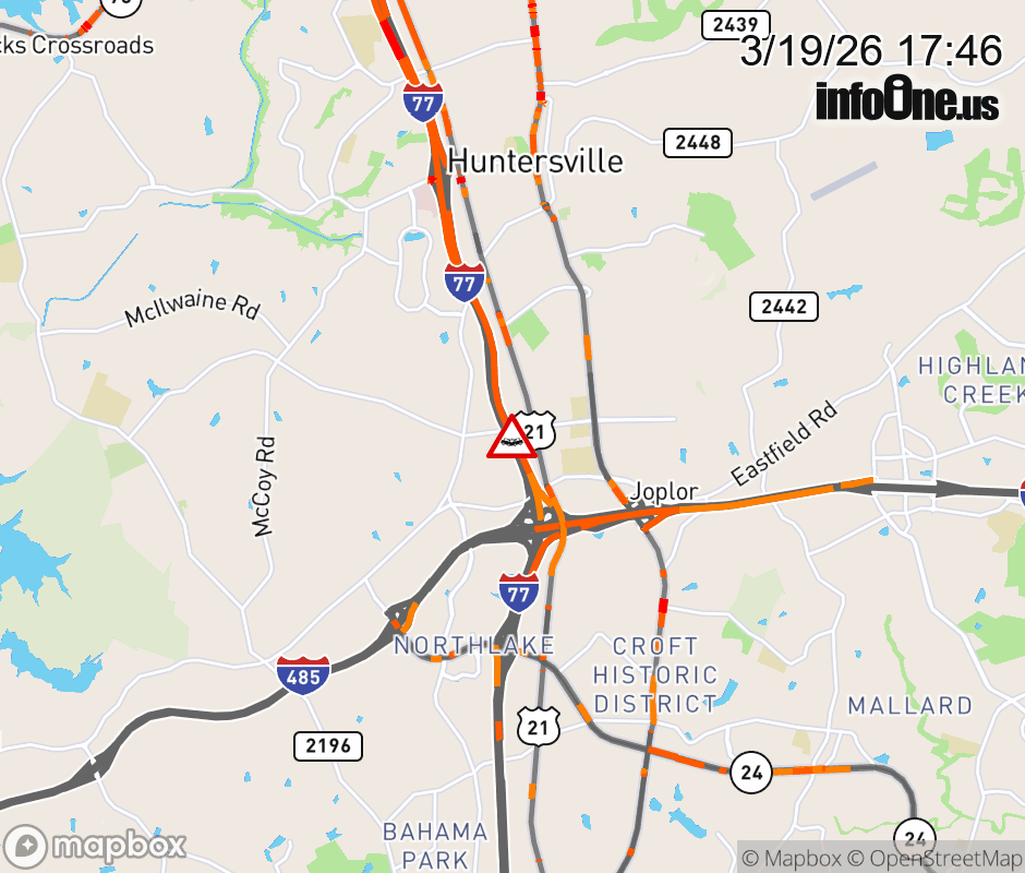 Crash on I-77 North Bound near the Hambright Rd overpass. The left general purpose lane is blocked. ![]() |