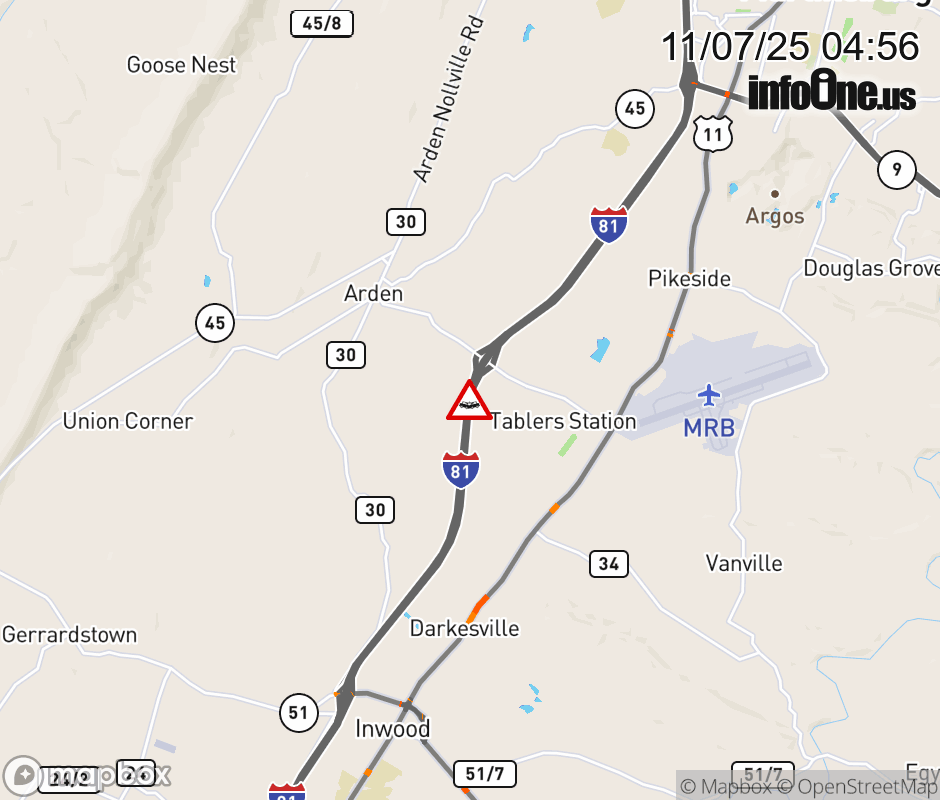 Canceled 11/7/25 5:34 AM Location: I-81 at MM 8.0, WV Accident.