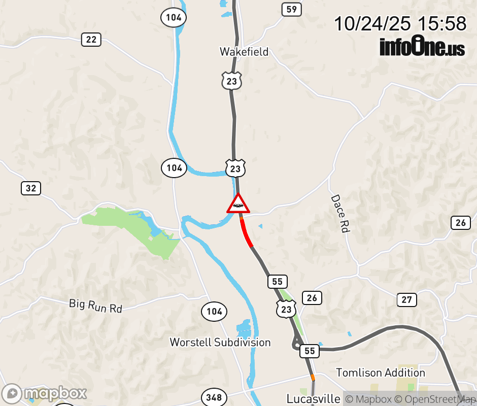 Expect lane closures on US-23 North beyond Cockrell'S Run Rd, due to a crash. ![]() |