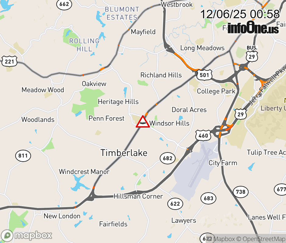 On BUS US-460 East in the County of Campbell, in the vicinity of Rt. 739E/W (Campbell County), motorists can expect delays due to a vehicle crash. Lane closures exist. ![]() |