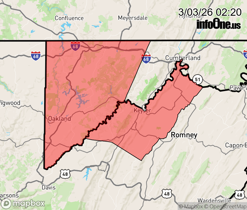 Winter Weather Advisory issued March 3 at 2:19AM EST until March 3 at 1:00PM EST by NWS Baltimore MD/Washington DC * WHAT... Freezing rain. Additional ice accumulations between one tenth and two tenths of an inch. * WHERE... In Maryland, Eastern Garrett County. In West Virginia, Western Mineral County. * WHEN... Until 1 PM EST this afternoon. * IMPACTS... Difficult travel conditions are possible. The hazardous conditions could impact the Tuesday morning commute. ![]() |