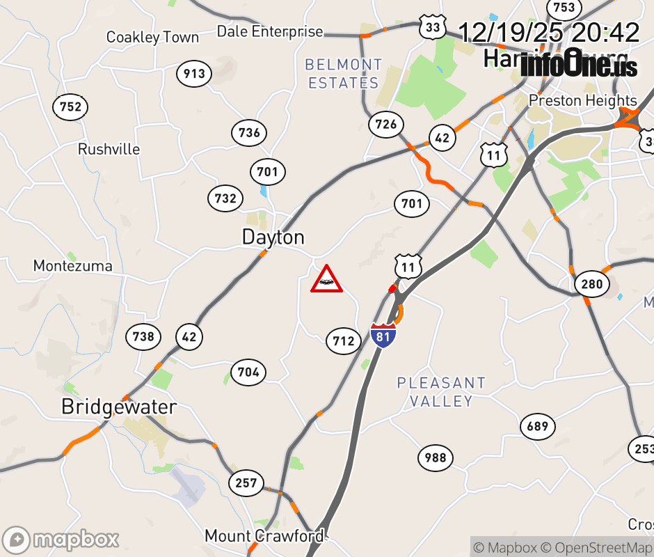 On Rt. 701 North in the County of Rockingham, in the vicinity of Liskey Rd; Rt. 712N/S (Rockingham County), motorists can expect delays due to a vehicle crash. Updated: Fri 12/19/25 8:42 PM EST ![]() Updated: Fri 12/19/25 8:42 PM EST |
