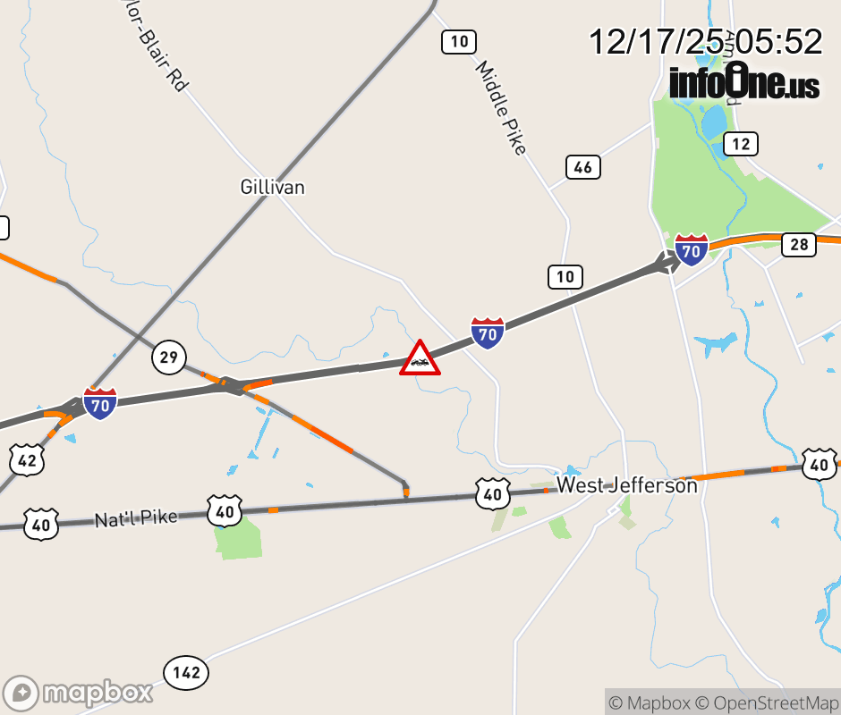 The left lane is blocked on I-70 West beyond SR-142/West Jefferson/Plain City, due to a disabled vehicle. ![]() |