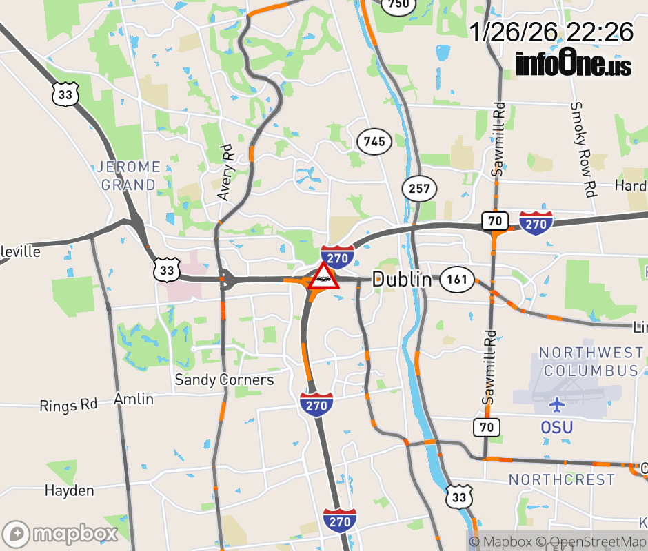 Ramp to US-33/SR-161 West from I-270 North is closed due to crash. ![]() |