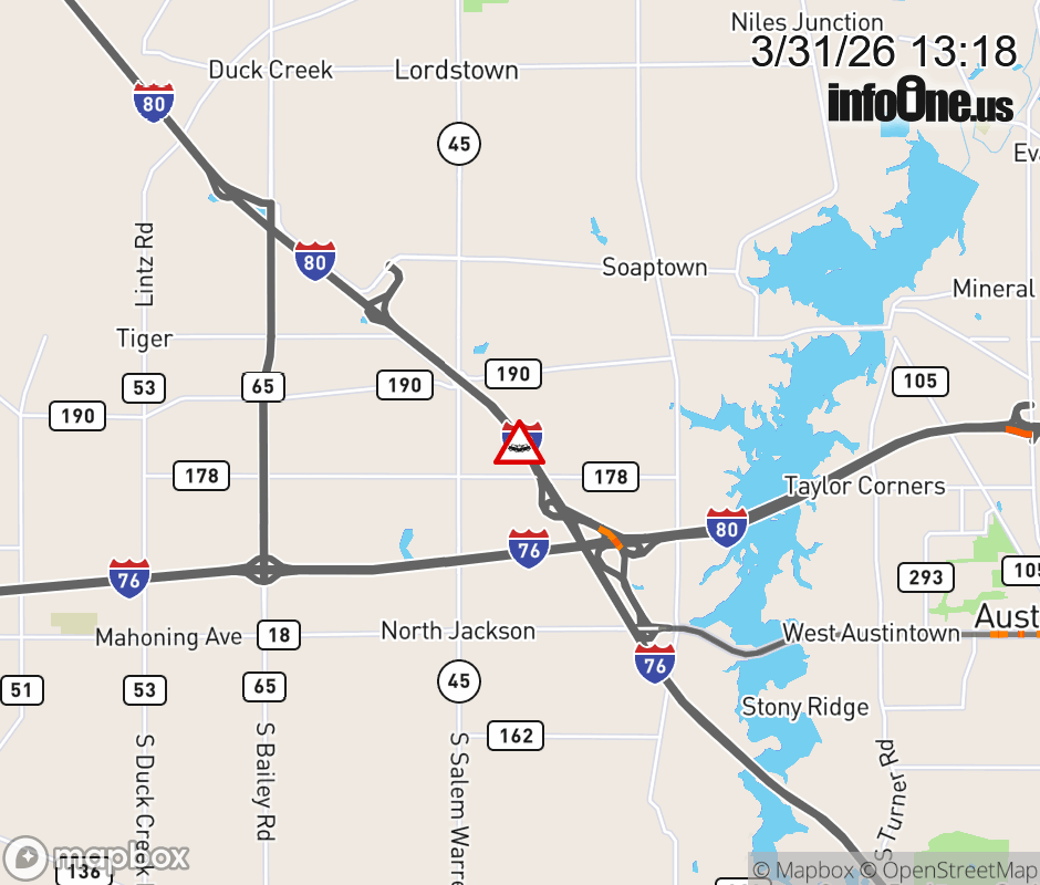 Expect lane closures on I-80 East (Ohio Turnpike) at I-76/80, due to a crash. ![]() |