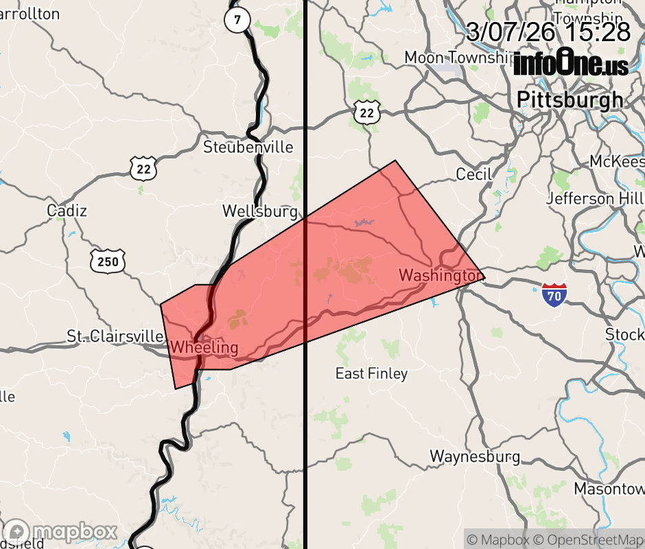 Canceled 3/7/26 3:37 PM Severe Thunderstorm Warning issued March 7 at 3:26PM EST until March 7 at 4:00PM EST by NWS Pittsburgh PA At 326 PM EST, a severe thunderstorm was located over Wheeling, moving northeast at 50 mph. HAZARD...60 mph wind gusts and half dollar size hail. SOURCE...Public reported. IMPACT...Hail damage to vehicles is expected. Expect wind damage to roofs, siding, and trees. Locations impacted include... Wheeling, Washington, Martins Ferry, Bellaire, Warwood, Bethlehem, West Liberty, Triadelphia, Avella, Clearview, Valley Grove, Wolfdale, McGovern, East Washington, Bridgeport, Yorkville, Bethany, Claysville and Brookside. ![]() |