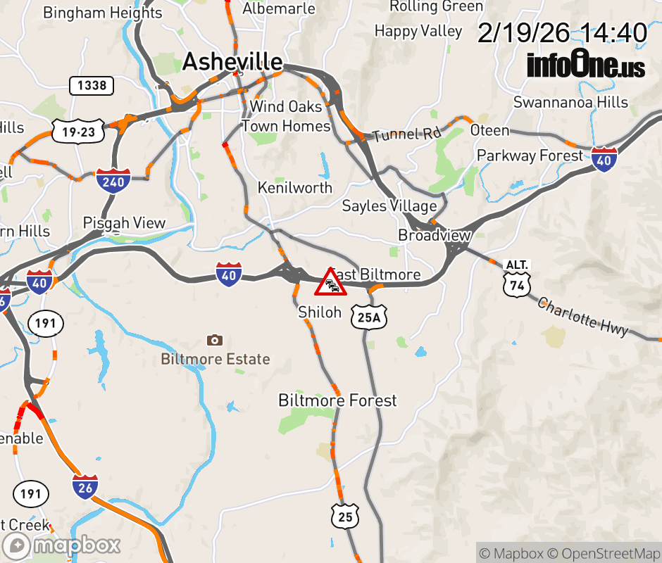 The right lane is closed half a mile west of Exit 51, US 25 ALT (Sweeten Creek Road). ![]() |