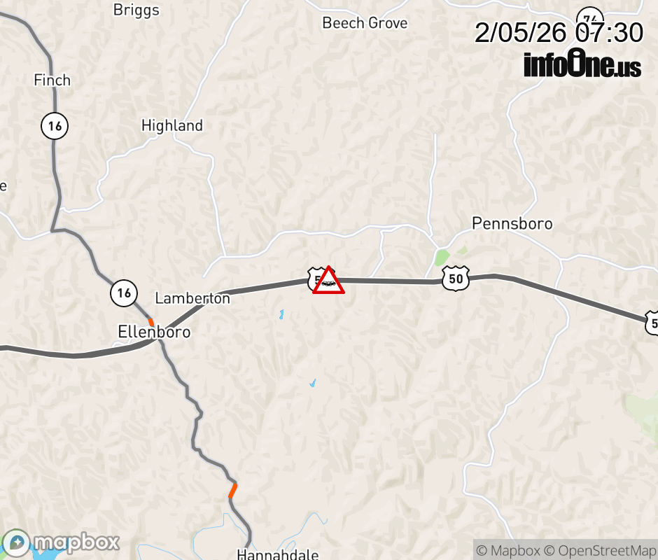 Vehicle Crash on US-50W MM 36. The westbound left lane is closed. Updated: Thu 2/5/26 7:30 AM EST ![]() Updated: Thu 2/5/26 7:30 AM EST |