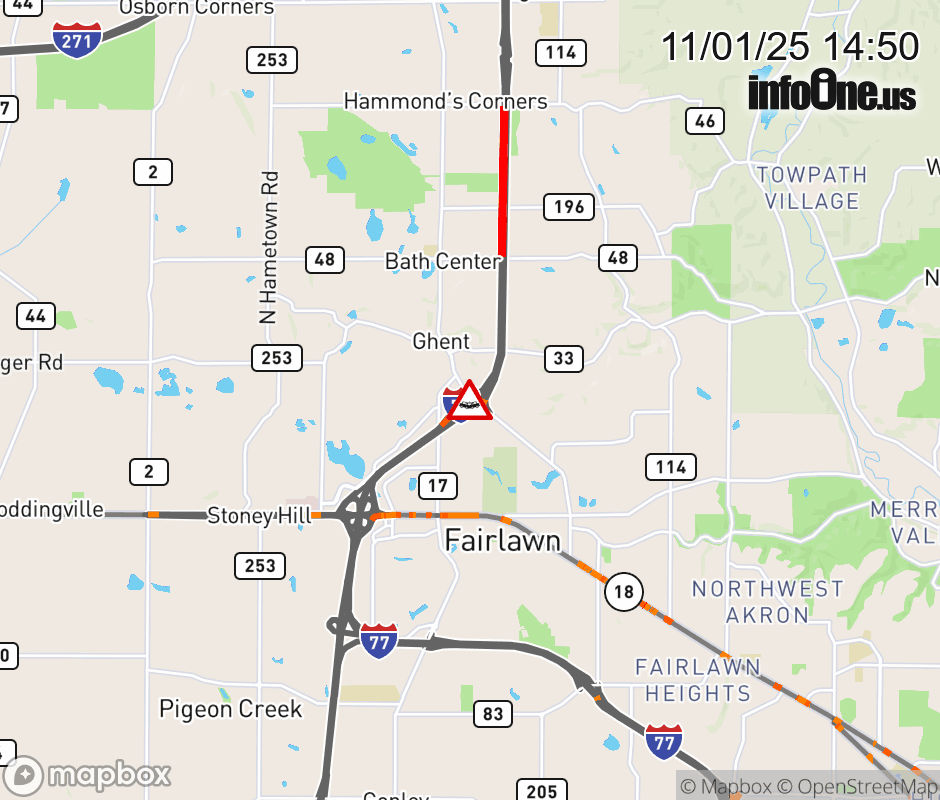 Ramp to Ghent Rd from I-77 South closed because of a crash. Use alternate route. ![]() |