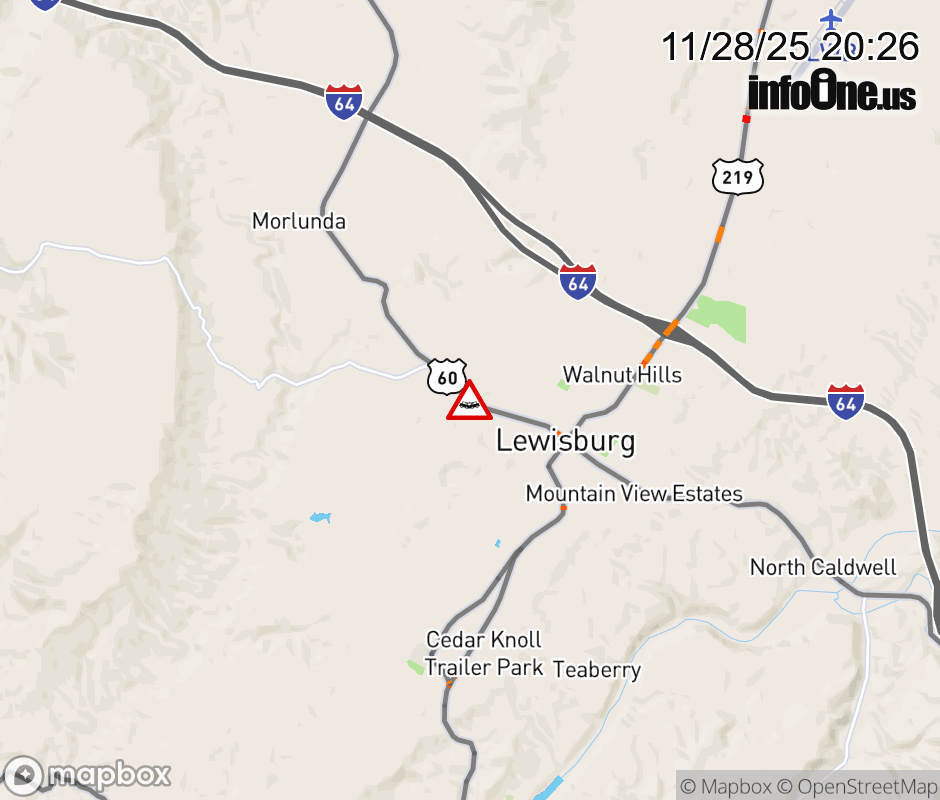 Vehicle Crash on US-60W (36200 Midland Trail E, Lewisburg). ![]() |