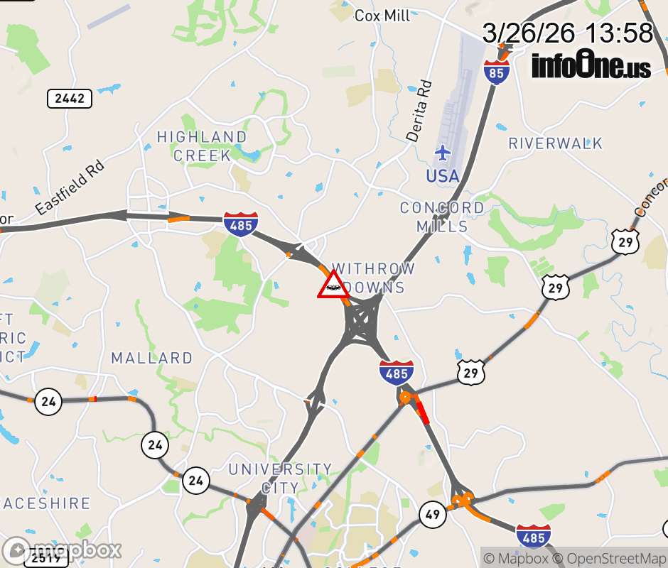 The left and right shoulders are closed at Exit 30(I-85). Updated: Thu 3/26/26 1:58 PM EDT ![]() Updated: Thu 3/26/26 1:58 PM EDT |
