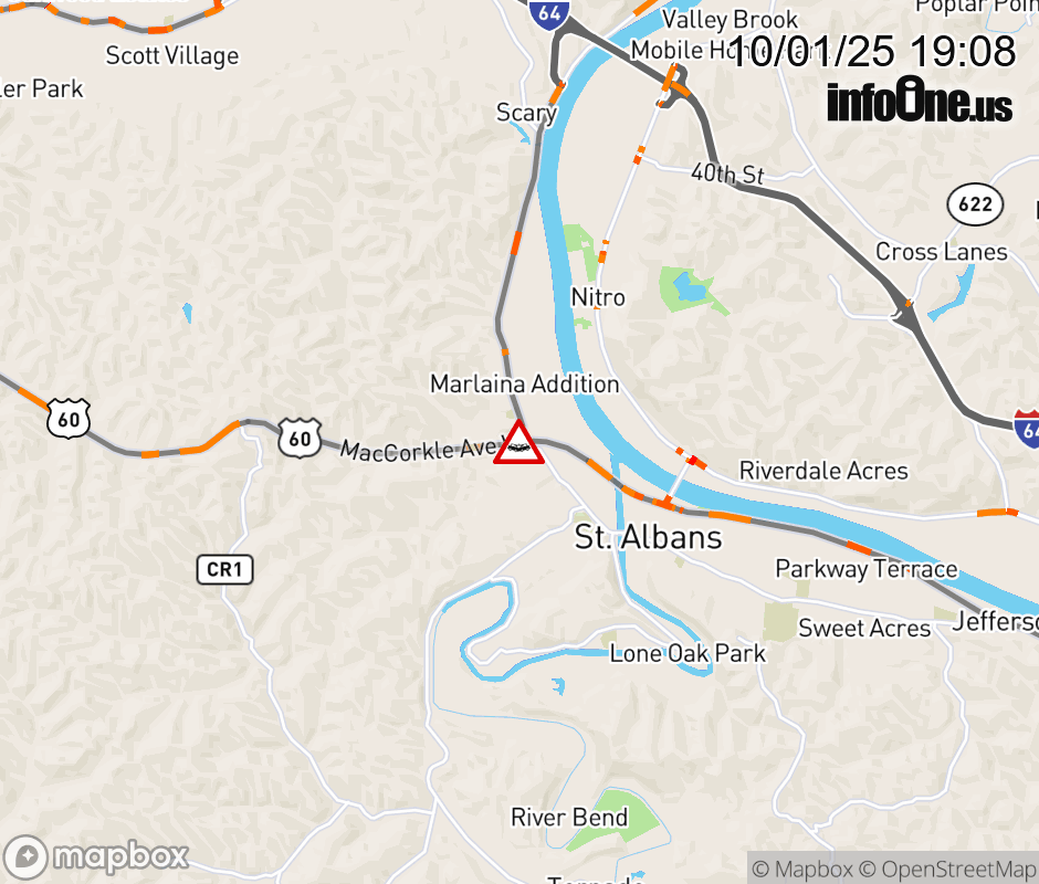 In Kanawha County there is a Vehicle Crash on WV-817 at Mile Marker 0.01. US-60 (MacCorkle Avenue). ![]() |
