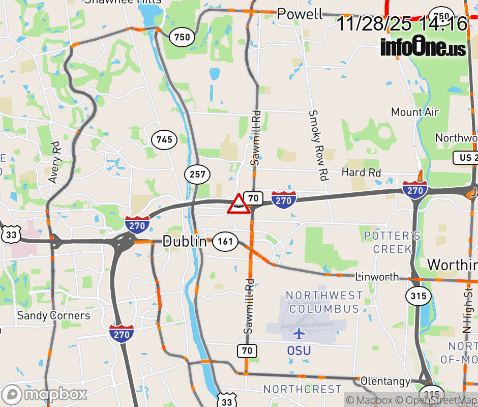 Ramp to Sawmill Rd from I-270 East is blocked due to crash. ![]() |