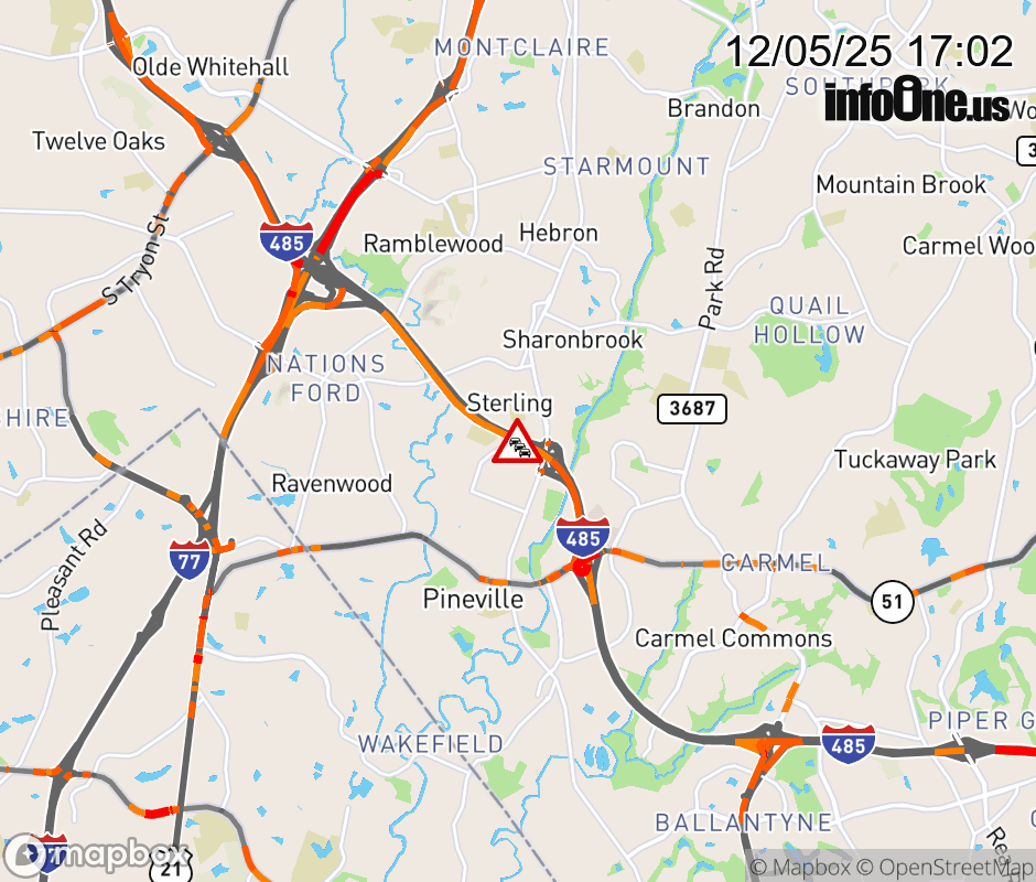 There is heavy congestion neat Exit 65 B (South Blvd). ![]() |