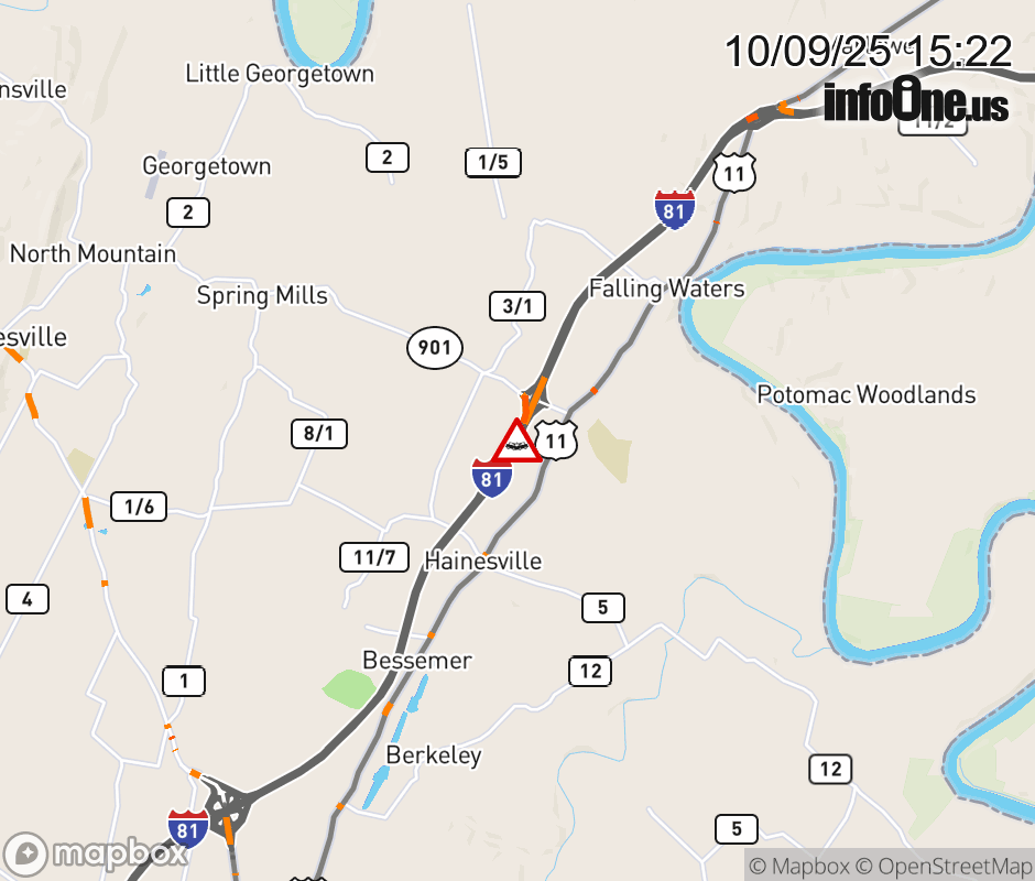Canceled 10/9/25 5:12 PM Location: I-81 at MM 20.0, WV Accident.