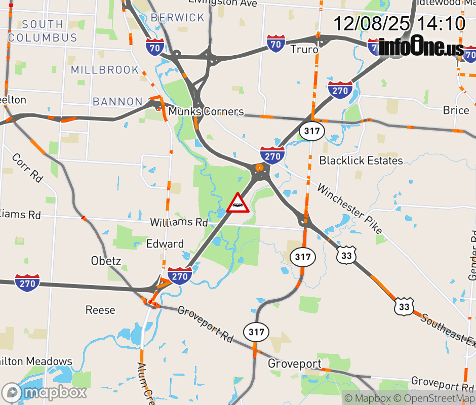 The right shoulder is blocked on I-270 North beyond Alum Creek Dr, due to a crash. ![]() |