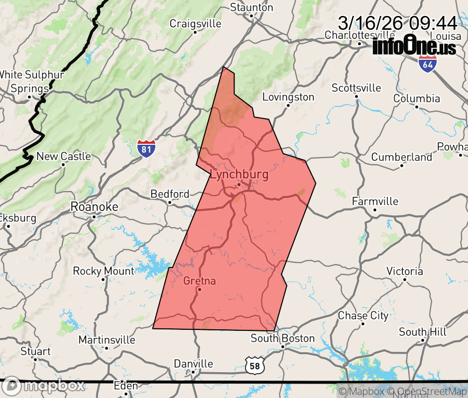 Canceled 3/16/26 9:45 AM Severe Thunderstorm Warning issued March 16 at 9:43AM EDT until March 16 at 9:45AM EDT by NWS Blacksburg VA The storms which prompted the warning have weakened below severe limits, and no longer pose an immediate threat to life or property. Therefore, the warning will be allowed to expire. However, gusty winds are still possible with these thunderstorms. A Tornado Watch remains in effect until 200 PM EDT for north central North Carolina...and central, south central and west central Virginia. ![]() |