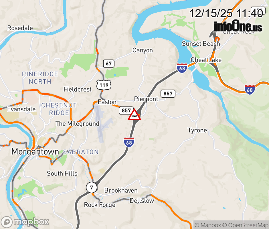 Vehicle Crash on CR-857 (Cheat Road at I-68 WB Ramps). ![]() |