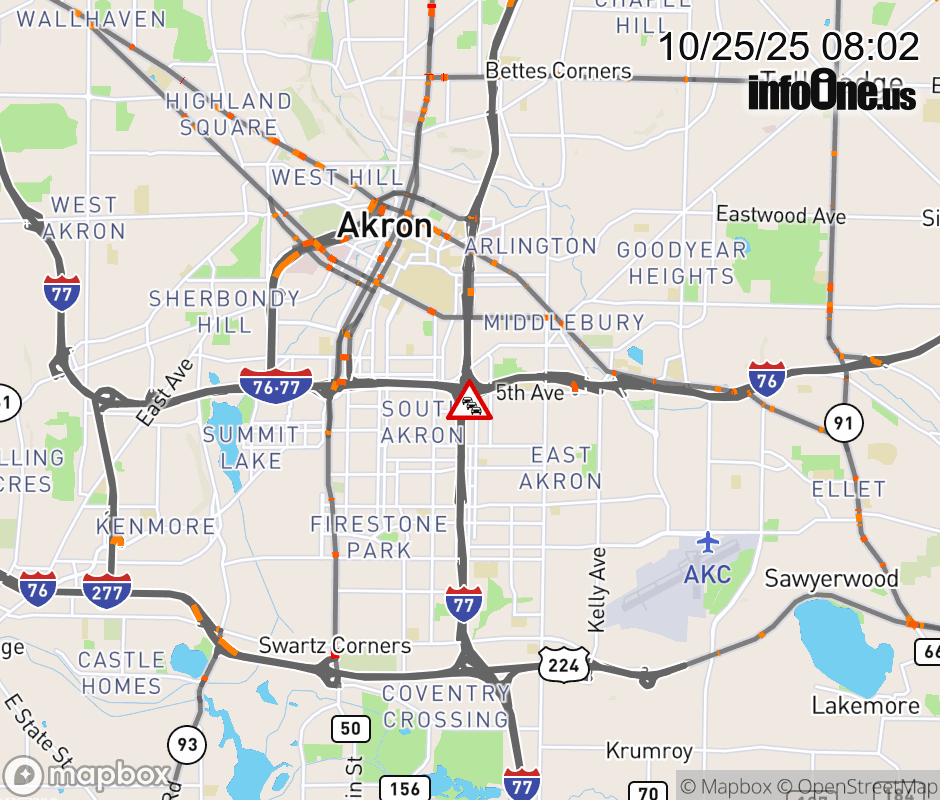 Ramp I-77 North to I-76 East CLOSED because of road work. Updated: Sat 10/25/25 8:02 AM EDT ![]() |