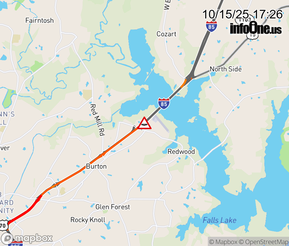 Canceled 10/15/25 6:54 PM Location: I-85N at MM 183, NC Vehicle Crash.