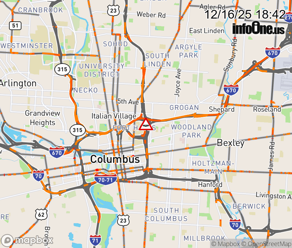 The right lane is closed on I-71 North beyond I-670 West, due to a crash. Updated: Tue 12/16/25 6:42 PM EST ![]() Updated: Tue 12/16/25 6:42 PM EST |