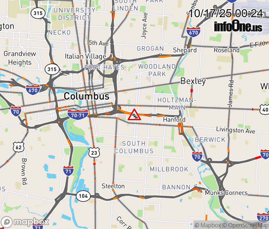 The 3 right lanes are blocked on I-70 East beyond E Fulton St, due to repairs/maintenance. Updated: Fri 10/17/25 12:24 AM EDT ![]() |