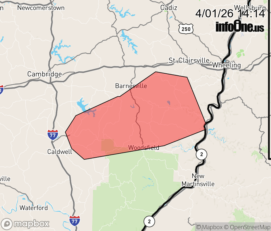 Canceled 4/1/26 2:18 PM Severe Thunderstorm Warning issued April 1 at 2:12PM EDT until April 1 at 3:00PM EDT by NWS Pittsburgh PA SVRPBZ The National Weather Service in Pittsburgh has issued a * Severe Thunderstorm Warning for... Southwestern Belmont County in east central Ohio... Northern Monroe County in east central Ohio... Northeastern Noble County in east central Ohio... * Until 300 PM EDT. * At 212 PM EDT, a severe thunderstorm was located over Summerfield, or 10 miles northeast of Caldwell, moving east at 35 mph. HAZARD...60 mph wind gusts and quarter size hail. SOURCE...Radar indicated. IMPACT...Hail damage to vehicles is expected. Expect wind damage to roofs, siding, and trees. * Locations impacted include... Barnesville, Woodsfield, Bethesda, Belmont, Beallsville, Summerfield, Lewisville, Sarahsville, Jerusalem, Wilson, Somerton, Alledonia, Batesville and Miltonsburg. ![]() |
