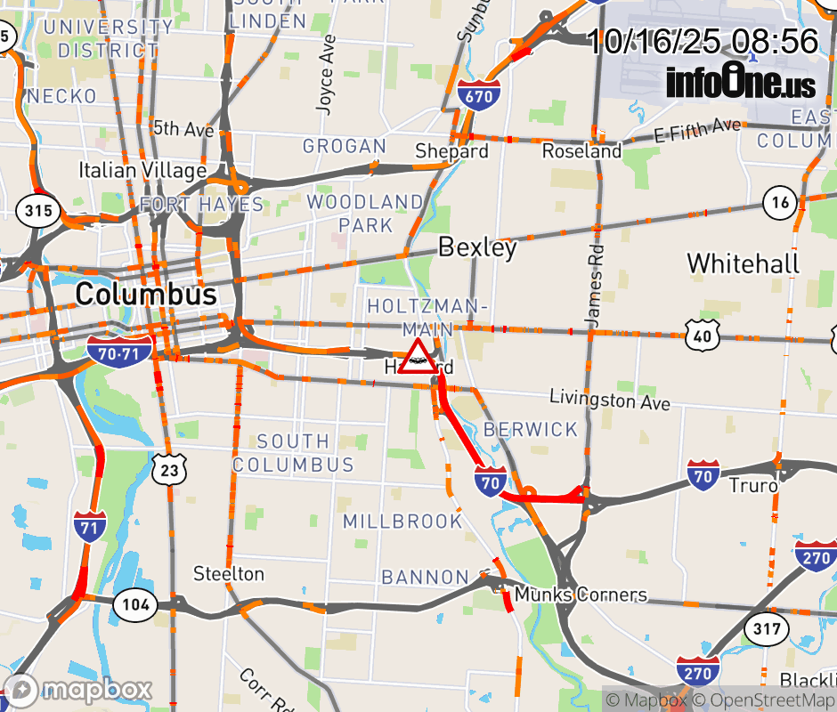 The right shoulder is blocked on I-70 West beyond US-33/Livingston Ave, due to a crash. Updated: Thu 10/16/25 8:56 AM EDT ![]() Updated: Thu 10/16/25 8:56 AM EDT |