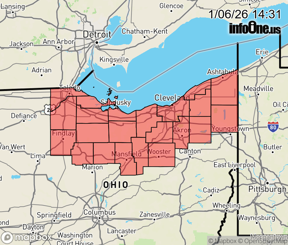 Canceled 1/6/26 4:30 PM Special Weather Statement issued January 6 at 2:29PM EST by NWS Cleveland OH Areas of fog, locally dense in spots, will affect the evening commute across the region. The thickest fog will reduce visibilities to one mile or less with some locally dense patches less than one-half mile. Motorists should be prepared for rapidly changing visibilities and allow for extra travel time this afternoon and evening. If driving, slow down, use your low beam headlights, and leave plenty of distance ahead of you. ![]() |