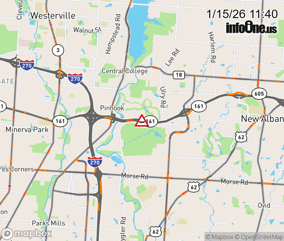 The left shoulder is blocked on SR-161 West beyond Hamilton Rd, due to a crash. Updated: Thu 1/15/26 11:40 AM EST ![]() Updated: Thu 1/15/26 11:40 AM EST |