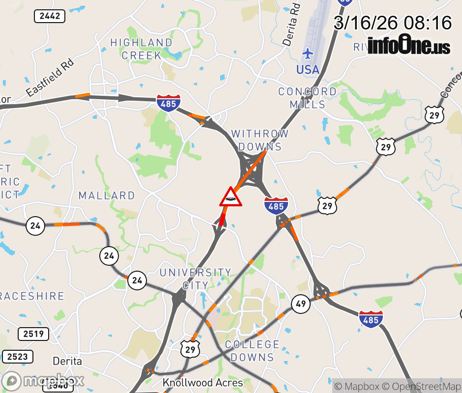 The two left lanes are closed at Exit 48 ( I-485 ) ![]() |