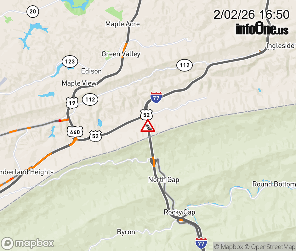 On I-77 in the County of Bland, at East River Mountain Tunnel North, motorists can expect delays due to a bridge/tunnel stoppage. All north lanes are closed. Updated: Mon 2/2/26 4:50 PM EST ![]() Updated: Mon 2/2/26 4:50 PM EST |