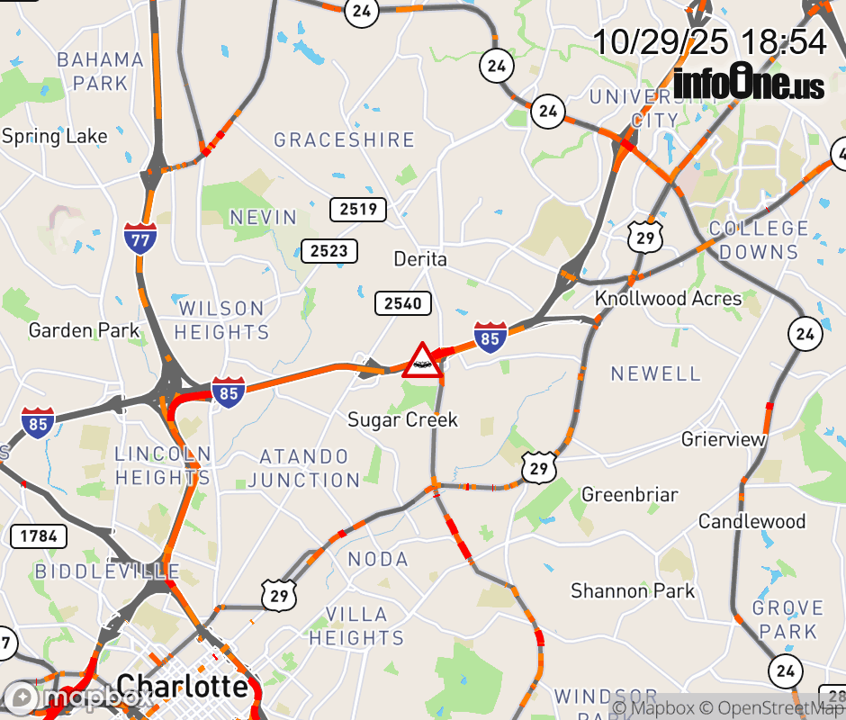 The right shoulder is closed past Exit 41 (West Sugar Creek Road). Updated: Wed 10/29/25 6:54 PM EDT ![]() Updated: Wed 10/29/25 6:54 PM EDT |