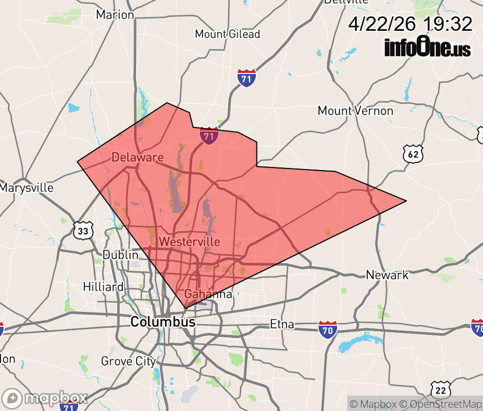 Canceled 4/22/26 8:00 PM Special Weather Statement issued April 22 at 7:30PM EDT by NWS Wilmington OH At 730 PM EDT, a strong thunderstorm was located near Delaware, moving southeast at 20 mph. HAZARD...Winds gusts up to 35 mph, half inch hail, and very heavy rain. SOURCE...Radar indicated. IMPACT...Gusty winds could knock down tree limbs and blow around unsecured objects. Hail may cause minor damage to vegetation. Visibility will be poor and hydroplaning is possible. Locations impacted include... Columbus, Westerville, Delaware, Gahanna, Worthington, Powell, Johnstown, Sunbury, Utica, Minerva Park, Polaris, Easton, New Albany, Galena, Ostrander, Riverlea, Hartford, Alum Creek State Park, Olive Green, and US Route 62 at State Route 661. This includes I-71 in Ohio between mile markers 115 and 138. If outdoors, consider seeking shelter inside a sturdy building. Motorists should slow down and use extra caution. To report hazardous weather conditions, go to our website at weather.gov/iln and submit your report via social media, when you can do so safely. ![]() |