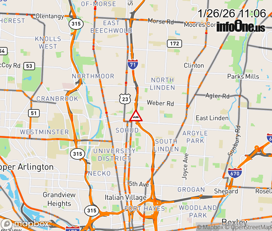 Ramp to Hudson St from I-71 South is blocked due to disabled vehicle. ![]() |