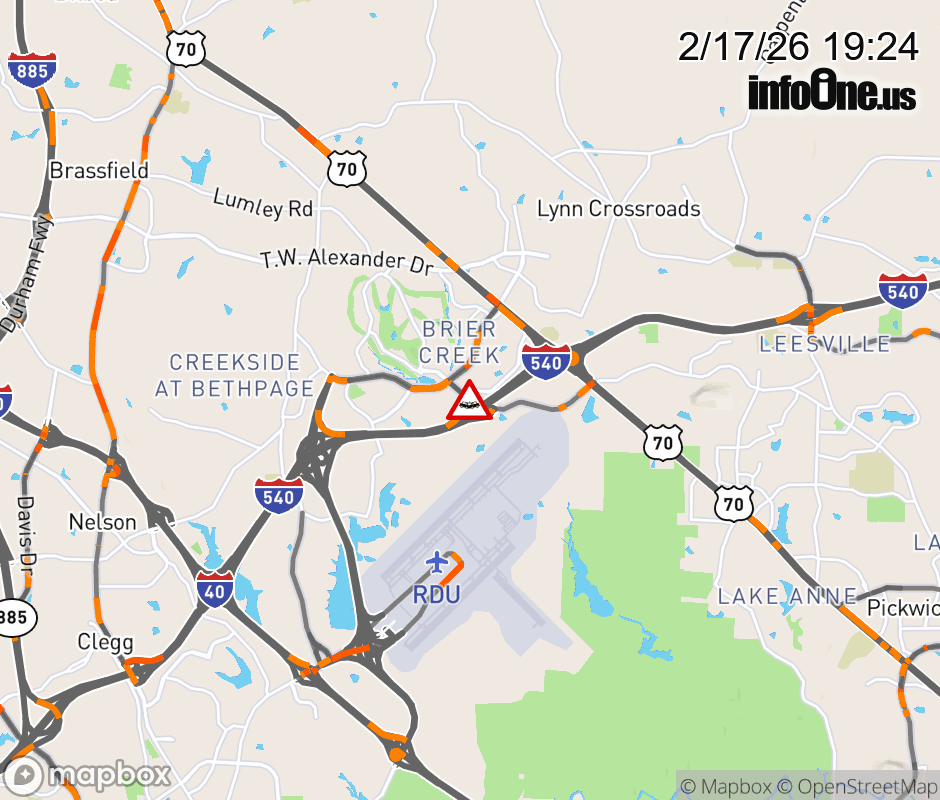 The 2 right lane is closed at I-540. Updated: Tue 2/17/26 7:24 PM EST ![]() Updated: Tue 2/17/26 7:24 PM EST |