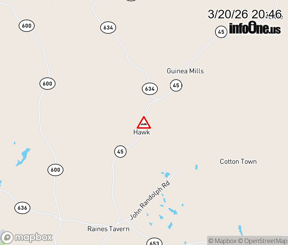 On VA-45 in the County of Cumberland, in the vicinity of Blanton Farm Rd; Rt. 691N/S (Cumberland County), motorists can expect delays due to a disabled vehicle. All north lanes are closed. ![]() |