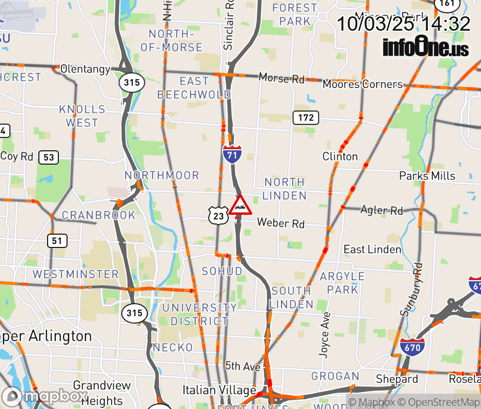 Ramp to North Broadway from I-71 North is blocked due to disabled vehicle. ![]() |