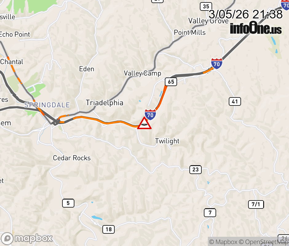 Canceled 3/6/26 1:24 AM Location: I-70 at MM 8.0, WV Accident.