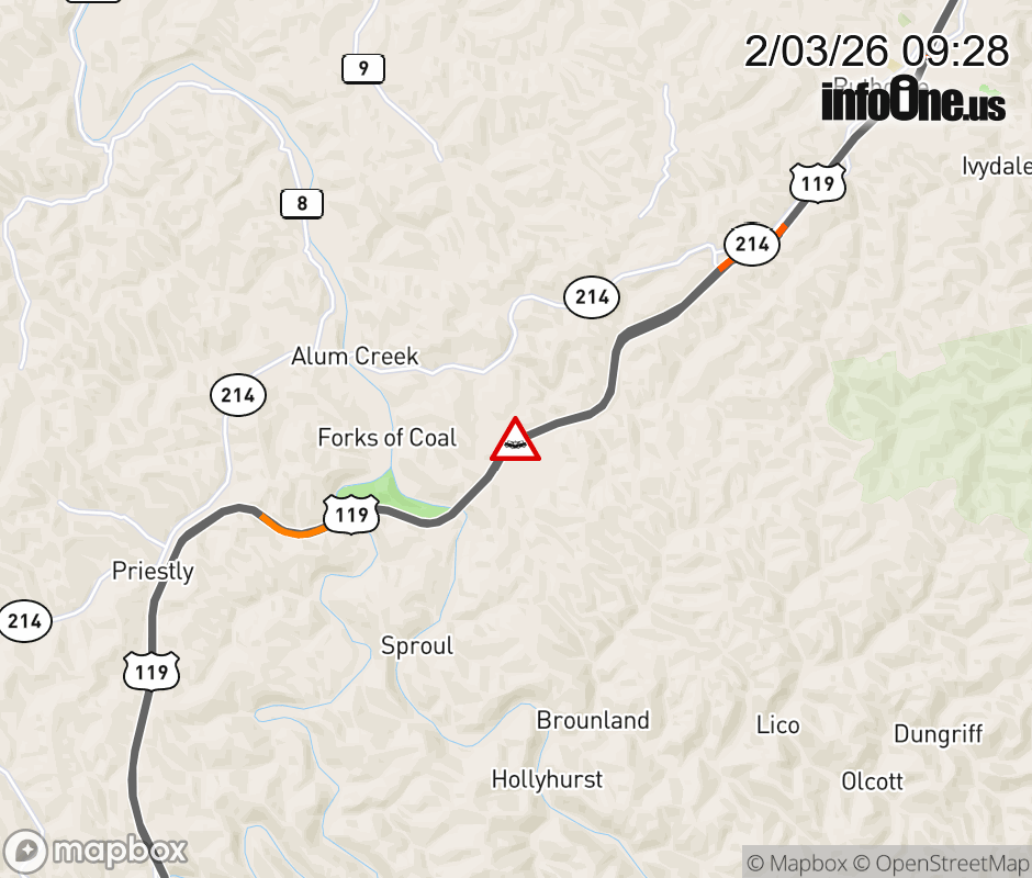 Vehicle Crash on US-119 (Corridor G SOuth) & Champion Dr in Alum Creek. ![]() |