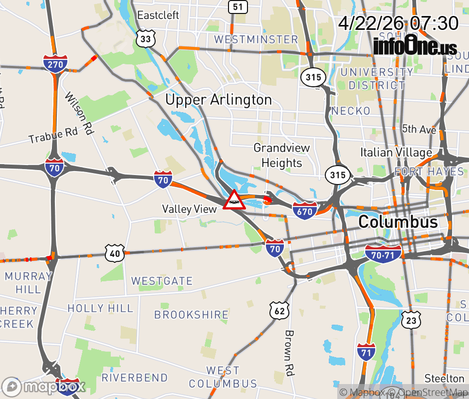 The right shoulder is blocked on I-670 East beyond I-70 East, due to a crash. ![]() |